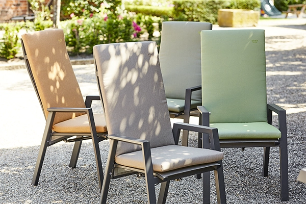 Mit Auflagen der Atria Serie wird jeder Moment im Grünen zu einem stilvollen Erlebnis. Der Stoff und die sanfte Polsterung laden Dich dazu ein, die Seele baumeln zu lassen und höchsten Komfort zu genießen.
