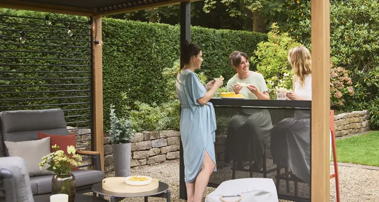 Witterungsbeständige Materialien machen Deine Terrassenüberdachung zum ganzjährigen Outdoor-Treffpunkt.